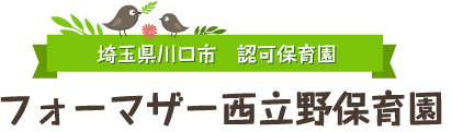 この度は数あるホームページの中から、フォーマザー西立野保育園のホームページをご覧いただきまして誠にありがとうございます。フォーマザー西立野保育園は、埼玉県川口市西立野にあります認可保育園で、げんきな子、かしこい子、あたたかい子に成長していただくことを目的として、養護と教育を一体化し、豊かな人間性をもった子どもを育成し、健全な心身の発達を促すという保育理念のもと、運営をしています。今後も埼玉県川口市の認可保育園フォーマザー西立野保育園をよろしくお願いいたします。
