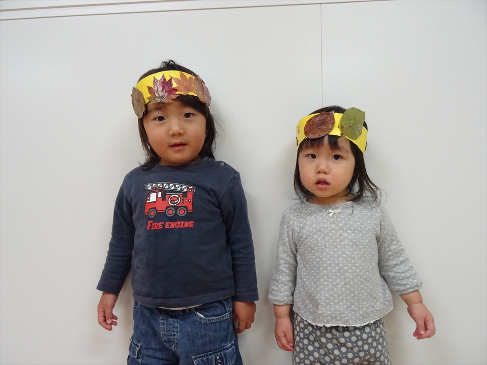 落ち葉ファッション「公園で拾ったよ!」