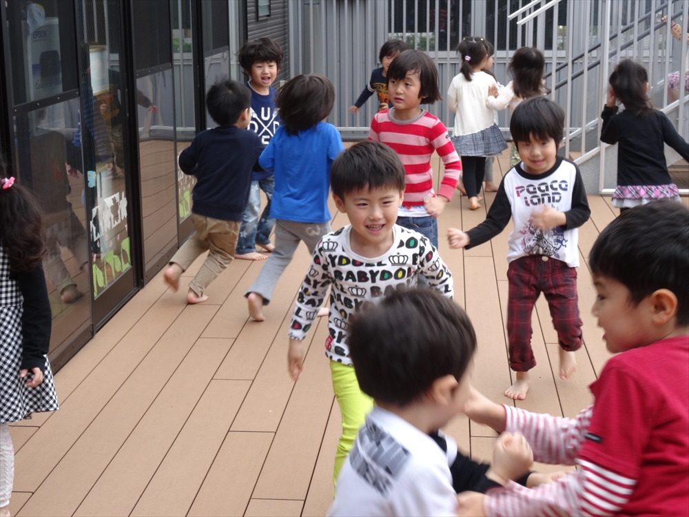 テラス遊びで「まてまて~!」